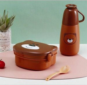 Set of Brown Plate and Water Bottle with spoon